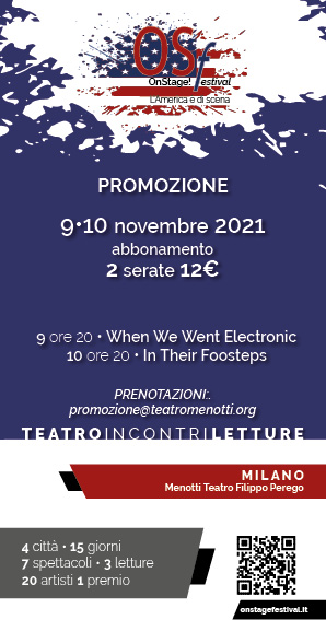The shows address current issues in the US and the Western world in general, using different theatrical languages. They are presented in the original language with Italian surtitles and will be followed by a meeting with the companies, in order to give the audience the opportunity to confront directly with foreign artists exceptionally in Italy (with simultaneous translation).