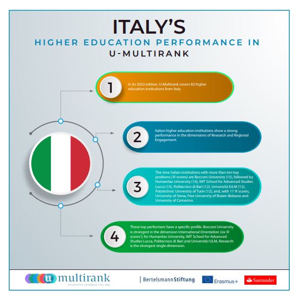 U-Multirank is the ranking developed at the initiative of the European Commission to measure the performance of universities in five specific areas - teaching, research, knowledge transfer, internationalisation and local engagement - with ratings ranging from 'A' (very good) to 'E' (poor). The result is not a conventional rankings classification, but rather a snapshot of the strengths and weaknesses of each participating university, which can accordingly be compared with other selected institutions on the U-Multirank portal. With the participation of more than 2000 institutions from 96 countries, of which more than a half are European, U-Multirank is the largest and most inclusive ranking showcasing the diversity in higher education around the world. The portal is a resource not only for potential international students, academics and experts, but also for government institutions, companies and potential partners. For this reason, IULM is very satisfied with these continuously improving results for the University - and is committed to further enhancing this positive trajectory of academic excellence.