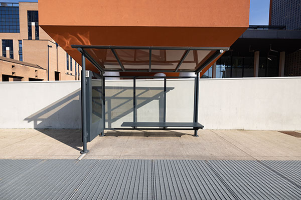 "Time Without End" is a structure located on campus similar to a bus stop shelter, but with a large vertical screen. Instead of displaying advertising messages, the screen transmits a kaleidoscope of images controlled remotely by the artists, who change its editing and content each month, giving new life to the work from time to time: a public "video sculpture" embedded in the open space of the campus, engaging all viewers in a collective experience of waiting.