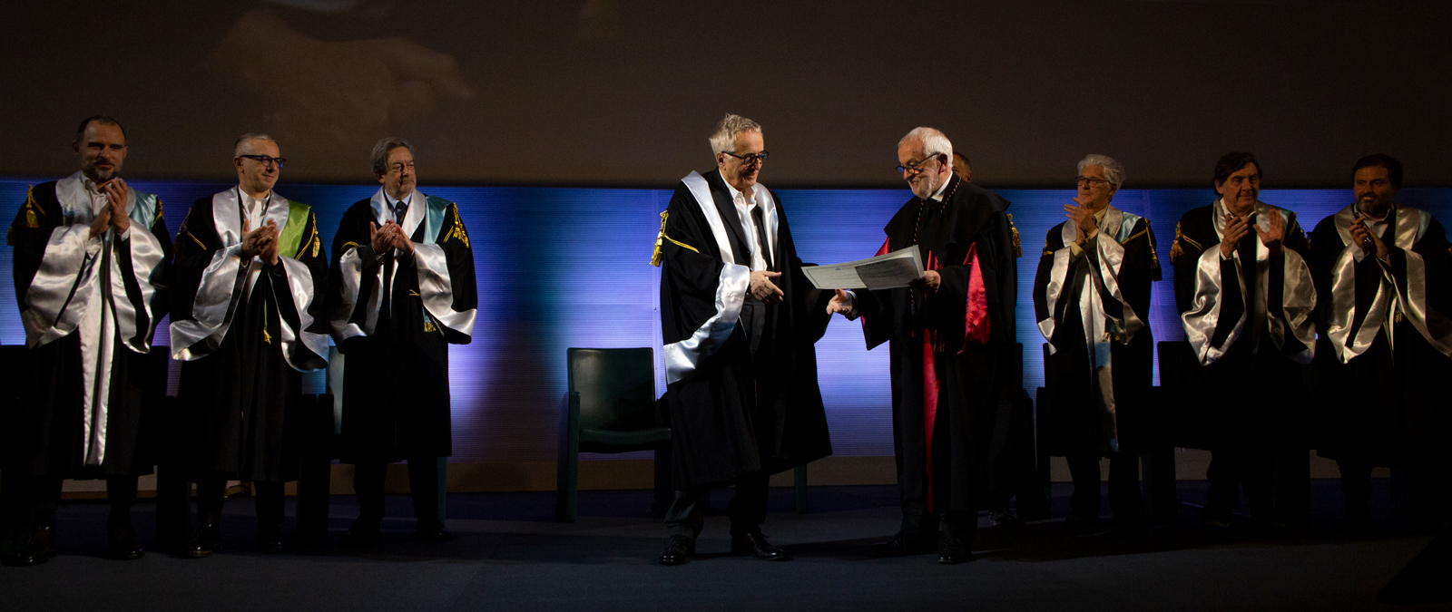 “Ci sono registi che riescono a essere presenti al proprio tempo per una ventina d’anni, pochi lo sanno fare per più di mezzo secolo, come Bellocchio – ha spiegato il Rettore Canova. – Da L’ora di religione in poi, passando per Il regista di matrimoni, Vincere e Fai bei sogni fino a Il traditore i suoi film sono capolavori perché mettono lo sguardo dentro le piaghe aperte della società, perché danno forma ai fantasmi che popolano l’immaginario collettivo. I film di Marco Bellocchio hanno sempre più registri stilistici che si intersecano. Anche ne Il traditore: la ricostruzione filmica sulla vicenda storica di Tommaso Buscetta, la cronaca e la parte visionaria con gli spettri mentali che passano nella testa del traditore. Mescolando e sovrapponendo questi tre registri, Bellocchio realizza un cinema che non ha eguali in Italia, di assoluta originalità e capace di emozionare e di farci capire meglio alcuni aspetti del mondo in cui viviamo”.