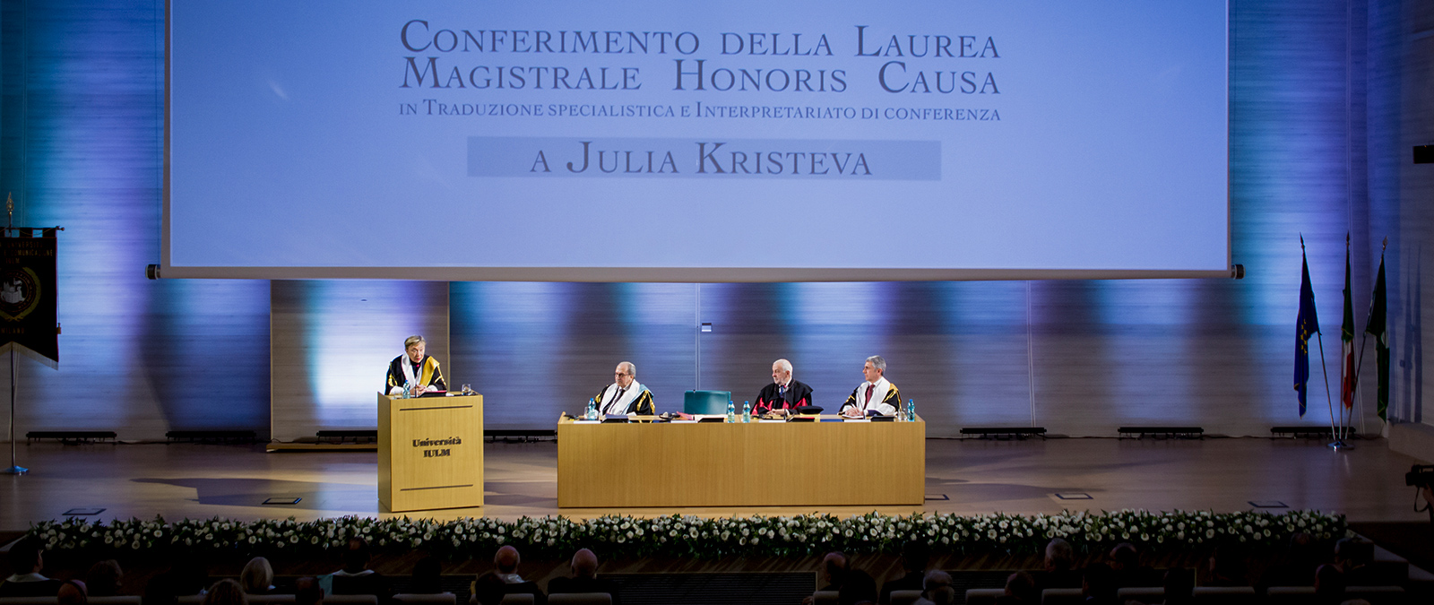 Il 12 dicembre 2018 l'Università IULM ha conferito la laurea magistrale honoris causa a Julia Kristeva, una delle più importanti e influenti intellettuali del nostro tempo: il prestigioso riconoscimento è stato conferito dal Rettore, Prof. Gianni Canova. A motivare il conferimento è stato il prof. Paolo Proietti, Preside della Facoltà di Interpretariato, traduzione e studi linguistici e culturali mentre la laudatio sarà tenuta dal prof. Giovanni Puglisi, professore emerito di letterature comparate e Rettore Emerito. “Esiste la cultura europea” sarà il titolo della Lectio Magistralis di Julia Kristeva.