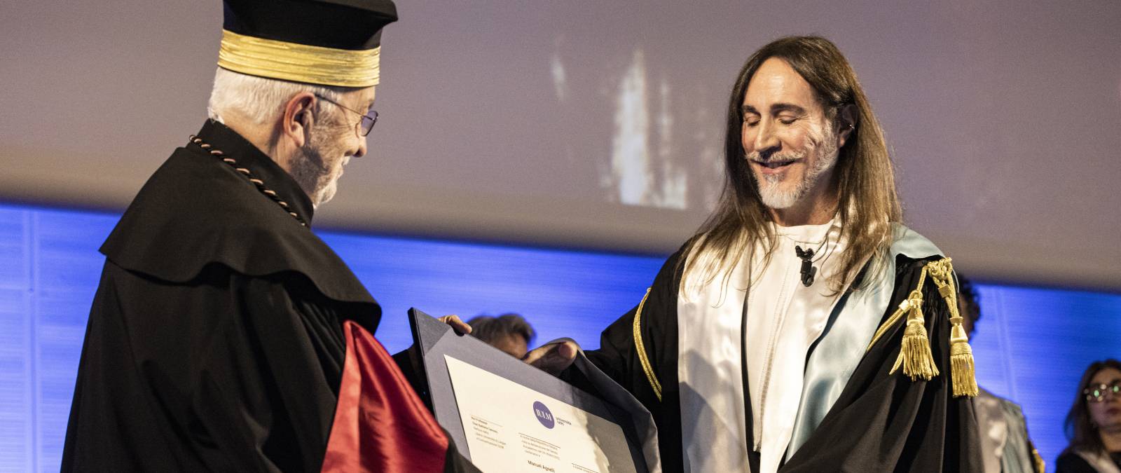Visibilmente emozionato, il cantautore ha dichiarato di ricevere il Master ad honorem come un grande onore e ha ringraziato tutte le persone fondamentali che hanno lavorato con lui durante tutto il suo percorso.