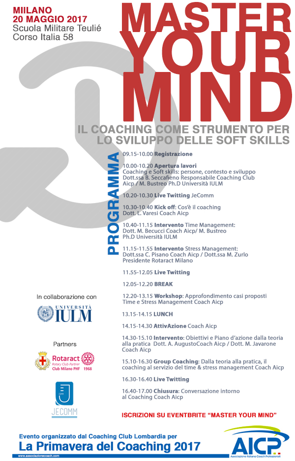 MASTER YOUR MIND - Il coaching come strumento per lo sviluppo delle soft skills è l’evento che introduce studenti universitari e neo-laureati alle prese con le sfide universitarie e le prime esperienze lavorative ed imprenditoriali alla scoperta del coaching.