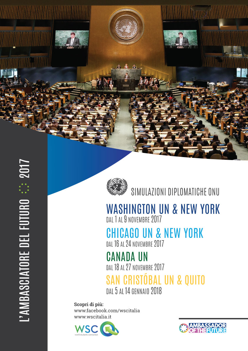 Il programma è organizzato dall’Associazione World Students Connection, in partnership con il N.C.C.A, Ente americano riconosciuto dalle Nazioni Unite nella quale l’Associazione World Students Connection è accreditata. Quest’anno Model United Nations, che coinvolge 6000 studenti da ogni parte del globo, offre un programma con numerose tappe e diverse date:
