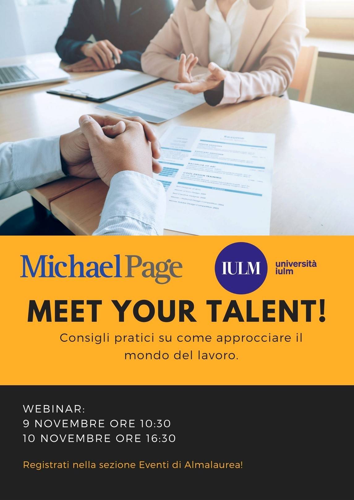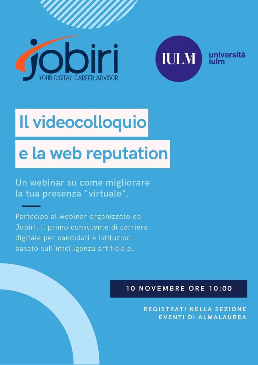 È il tuo primo videocolloquio? Non sai come prepararti e hai paura della tua prima esperienza lavorativa? Segui i webinar di Micheal Page e di Jobiri che ti aiuteranno a costruire la tua web reputation e ad approcciare il mondo del lavoro!