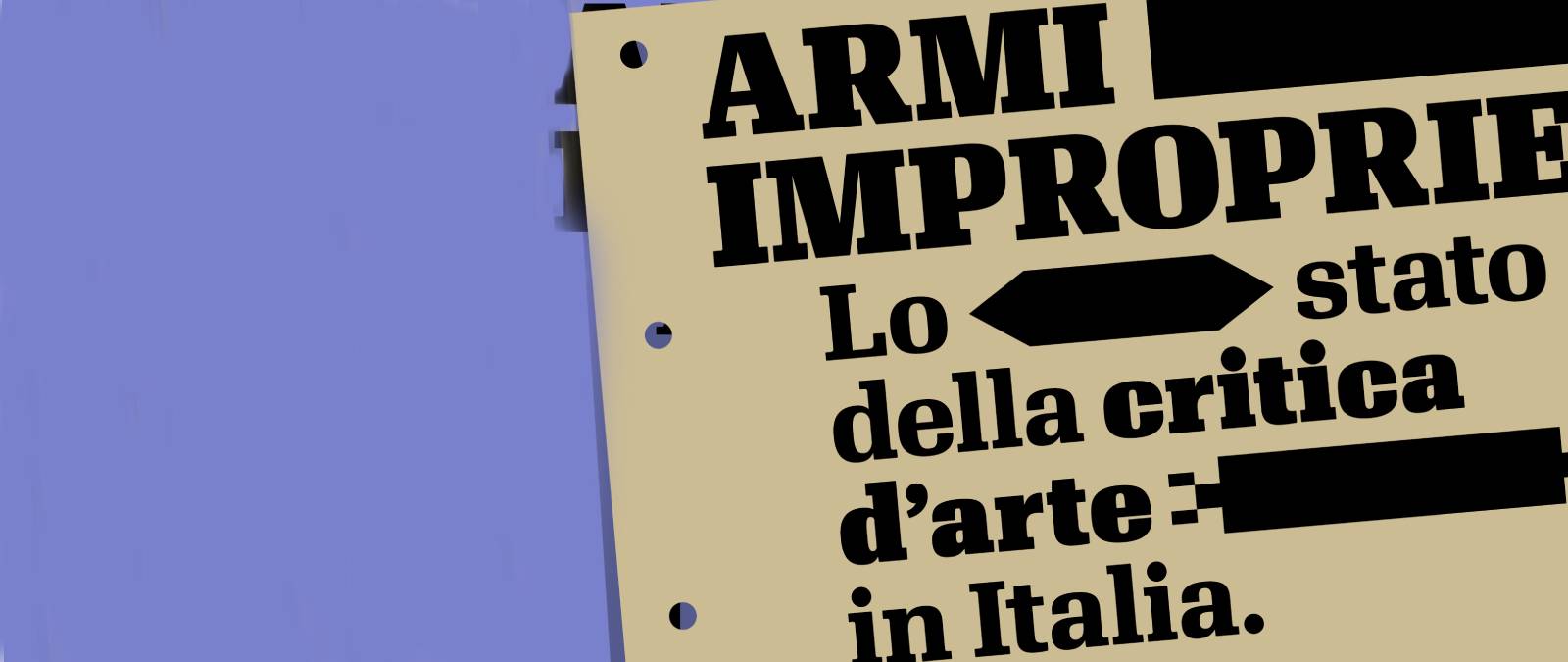 Armi improprie. Lo stato della critica d’arte in Italia è a cura del professor Vincenzo Trione, Preside della Facoltà di Arti e turismo, in collaborazione con il Dottorato di ricerca in Visual and Media Studies e il Center for Visual Studies (CVS).
