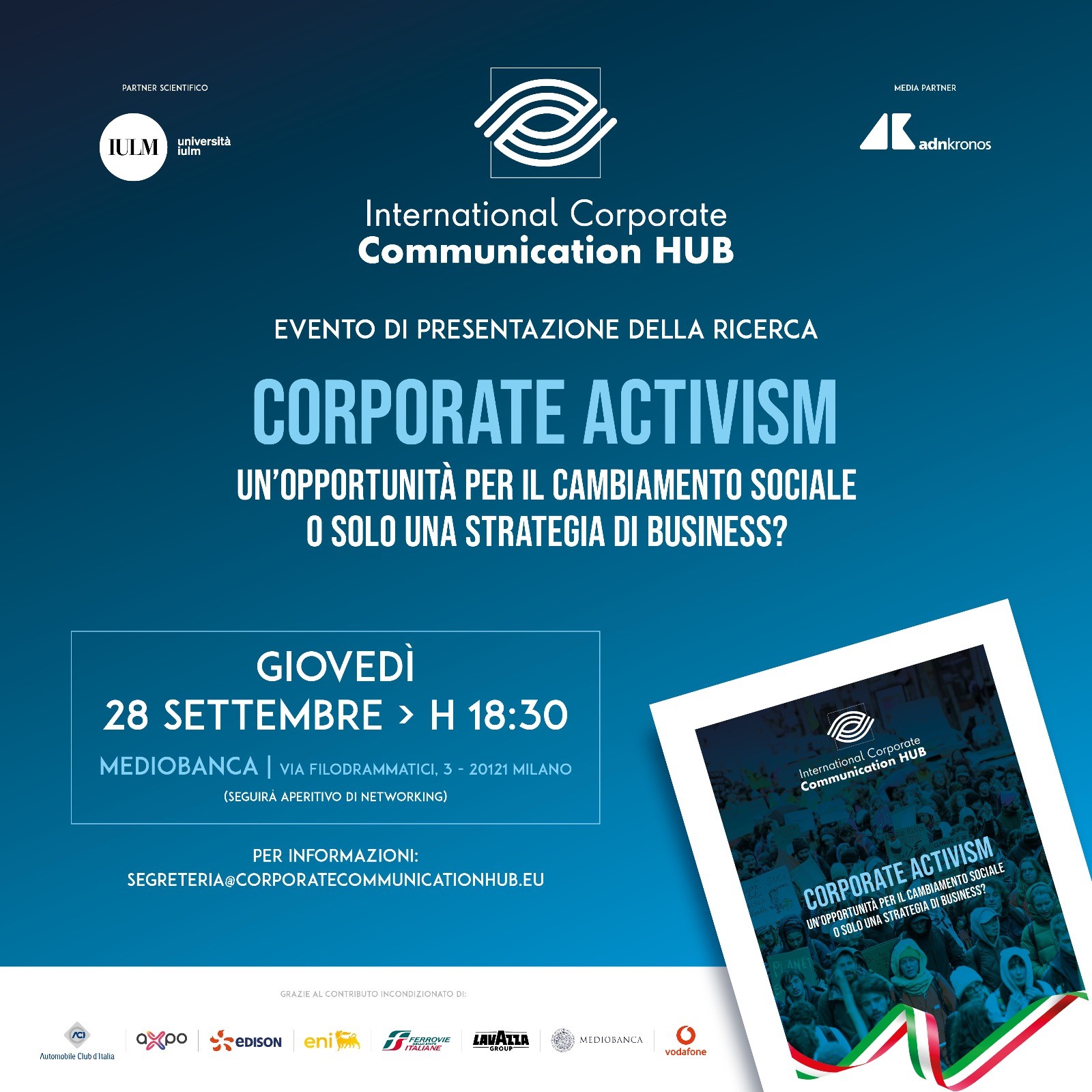 In che modo le grandi aziende utilizzano il Corporate Activism? Lo usano per promuovere davvero un cambiamento in cui credono? Oppure si tratta solo di una pura strategia di business? Queste sono alcune delle domande che hanno animato la Ricerca internazionale dal titolo “Corporate activism: un’opportunità per il cambiamento sociale o solo una strategia di business?”, i cui risultati verranno presentati giovedì 28 settembre alle ore 18:30 presso la sede di Mediobanca (Via Filodrammatici, 3) a Milano