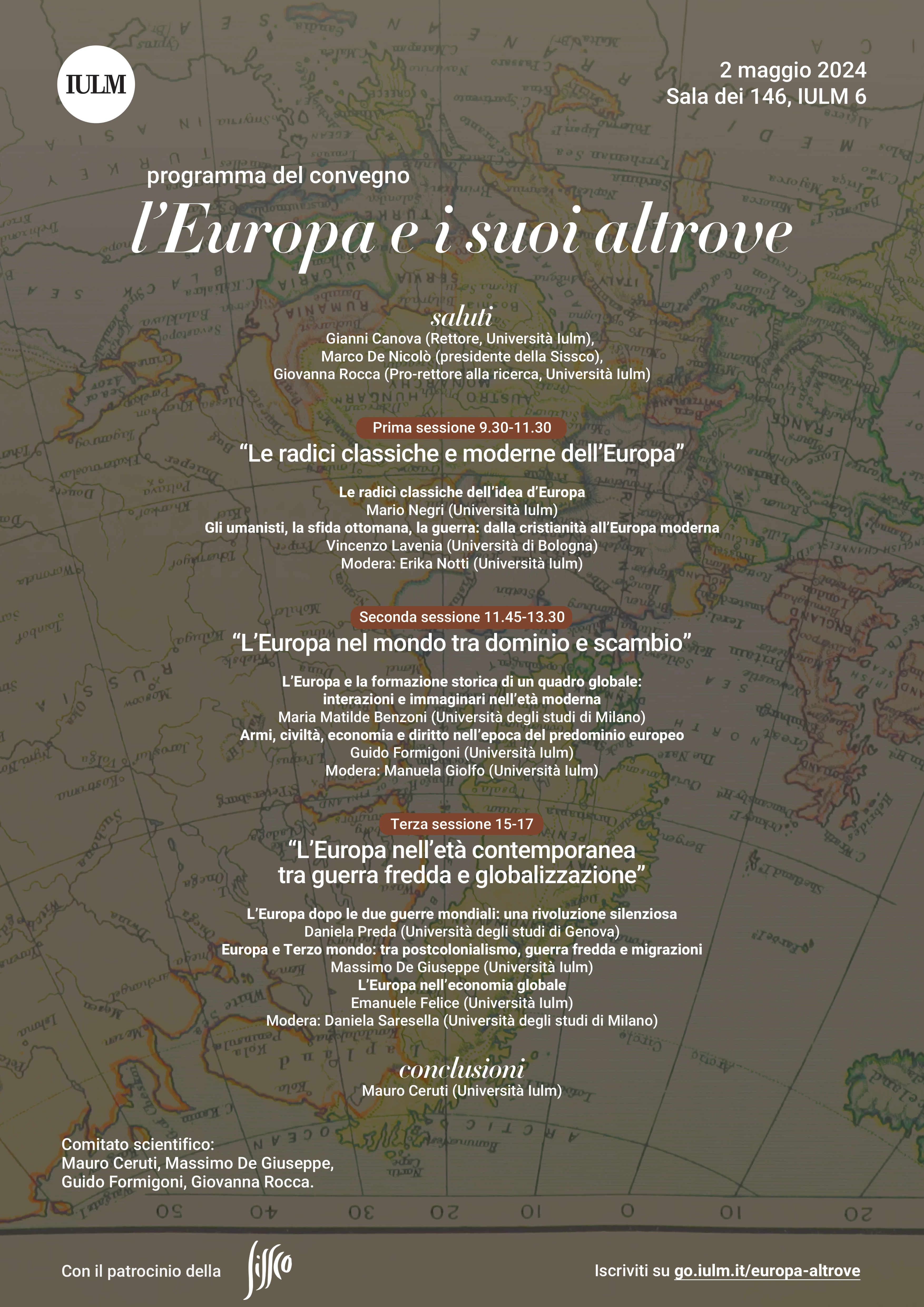 In questo 2024 in cui l’Università Iulm si sperimenterà con il nascente museo della comunicazione (tam tam) e in cui la parola dell’anno individuata dal Rettore è “avventura” nel senso etimologico di ciò che dovrà accadere (avvenimento straordinario, promettente e, proprio per questo, rischioso… avventuroso) ci è dunque parso importante organizzare questo convegno che, pur partendo da una ossatura di tipo storico, e nello specifico di storia contemporanea, vuole aprirsi a un serio confronto interdisciplinare che tenga conto delle necessarie contaminazioni e incontri con il mondo dell’epistemologia, della comunicazione, delle arti che contribuiscono alla formazione sempre in divenire degli immaginari collettivi. Il respiro sarà di lunga durata e vaglierà il confronto dell’Europa con i suoi altrove (mondi altri e loro introiezioni più o meno inconsapevoli) ma con particolare attenzione al lungo Novecento e ai dilemmi della contemporaneità. Di qui l’idea della collaborazione con la Società italiana per lo studio della storia contemporanea (Sissco), come patrocinatore e naturale interlocutore.