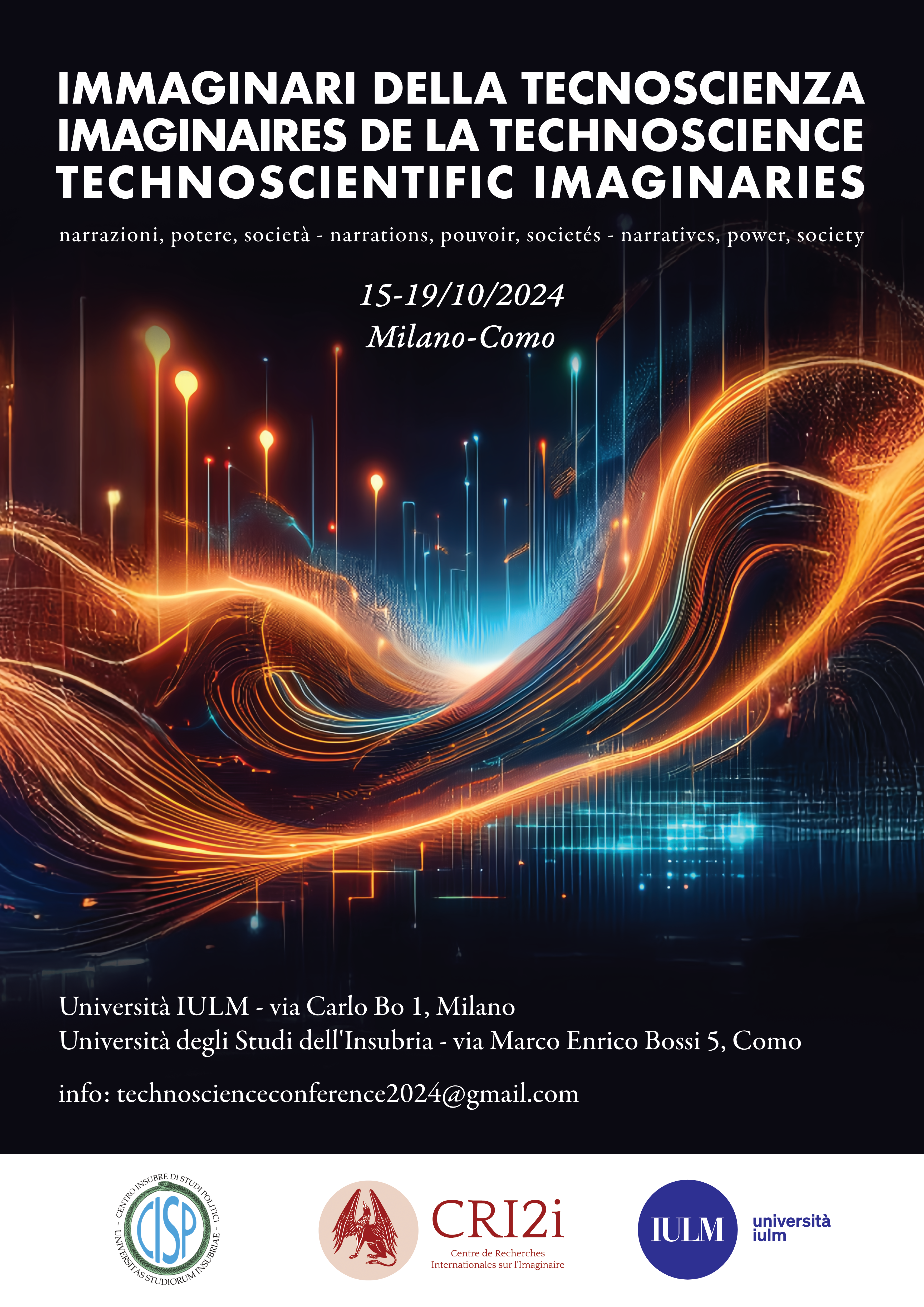 Dal 15 al 19 ottobre 2024 l’Università IULM e l’Università degli Studi dell’Insubria ospiteranno il Convegno Internazionale Immaginari della Tecnoscienza. Narrazioni, potere, società, organizzato dal Centro Insubre di Studi Politici (CISP) dell’Università degli Studi dell’Insubria e dai Dipartimenti di Studi Umanistici e di Comunicazione Arti e Media dell’Università IULM, in collaborazione con il Centre de Recherches Internationales sur l’Imaginaire (Cri2i).