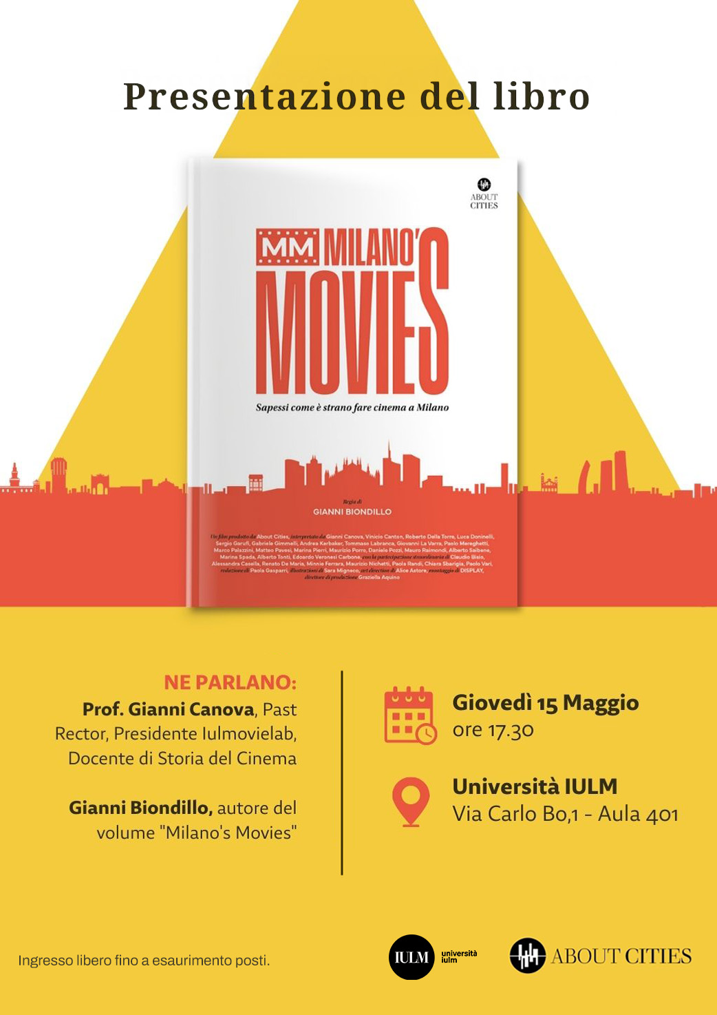 Al termine della sua lezione di Storia del cinema italiano, il Professor Gianni Canova dialogherà con lo scrittore Gianni Biondillo in occasione della presentazione del suo ultimo libro, Milano’s Movies, edito da About Cities.
