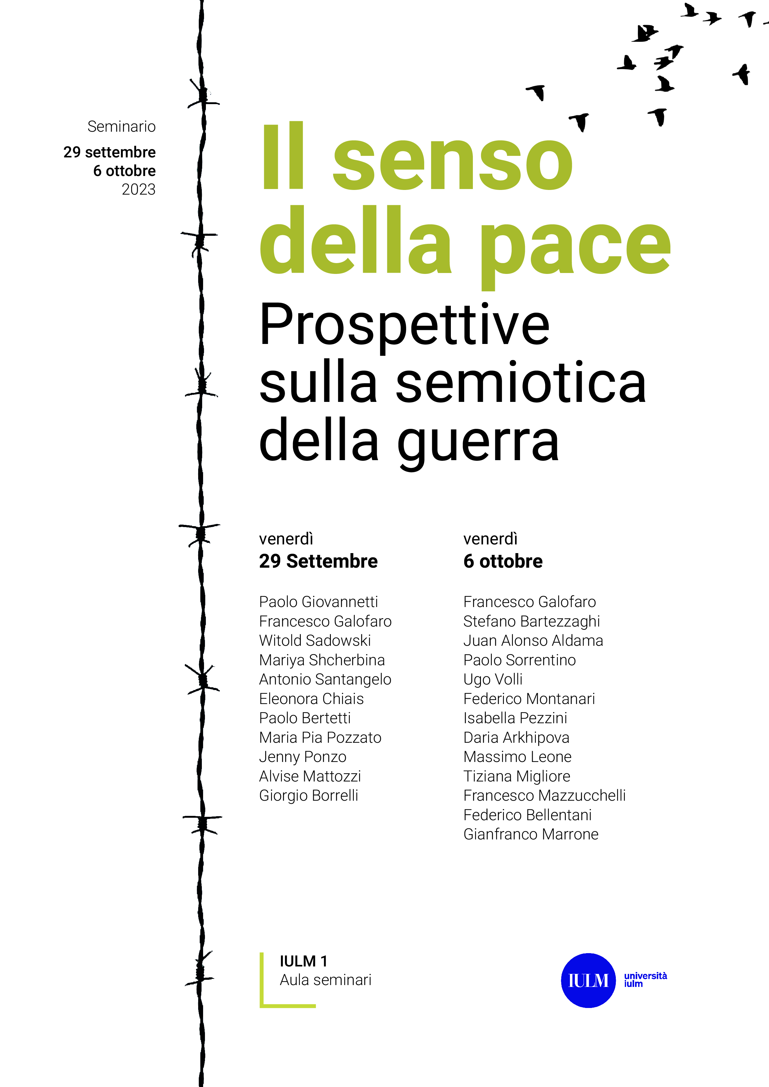 Data l’onnipervasività della guerra, appare impellente oggi tornare a interrogarsi sul senso che essa ha assunto entro i diversi generi discorsivi che caratterizzano la semiosfera europea, per chiederci se è ancora possibile, al suo interno, attribuire un significato alla pace. Per questo si terrà presso l’università IULM di Milano il seminario articolato in due giornate dal titolo Il senso della pace: prospettive sulla semiotica della guerra. Il seminario è organizzato dal Professor Francesco Galofaro, docente di Semiotica nel nostro Ateneo.